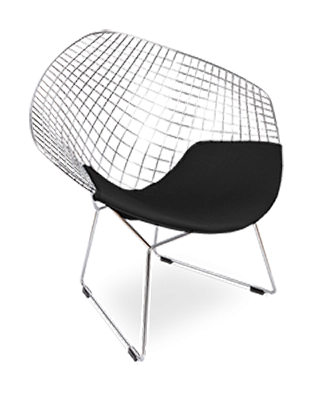 Harry Bertoia created his now iconic range of wire chairs with the intention of building furniture that worked with the natural light of a room. The Bertoia Diamond Chair conforms to this idea. Crafted from interlaced, chromed wire into a dramatic and ergonomic diamond shape, this chair appears light whilst creating a serious design statement. Just the right height for dining tables, but also perfect for placing in living room, bedrooms or outdoors during warmer months, the Pash Classics Diamond Chair replica comes complete with a comfy leatherette seat cushion. Stylish, minimal design but hugely practical.
