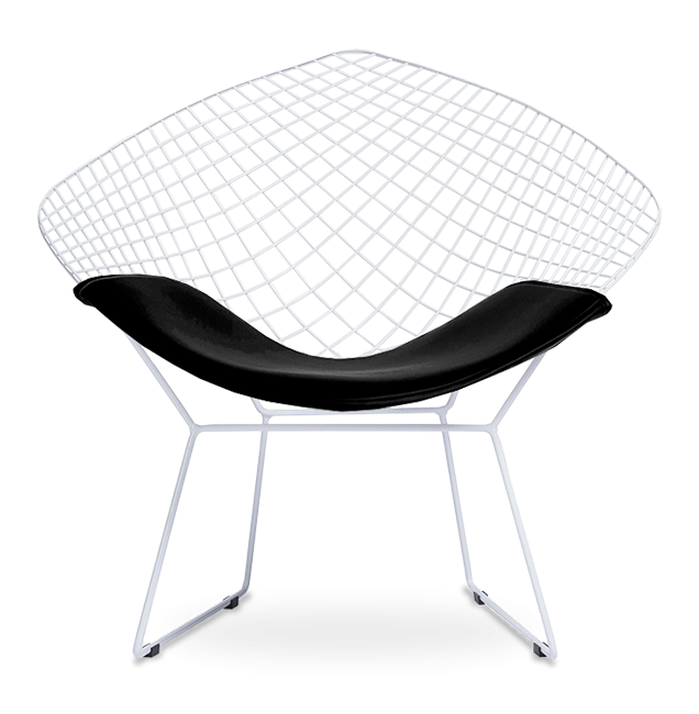 Harry Bertoia created his now iconic range of wire chairs with the intention of building furniture that worked with the natural light of a room. The Bertoia Diamond Chair conforms to this idea. Crafted from interlaced, chromed wire into a dramatic and ergonomic diamond shape, this chair appears light whilst creating a serious design statement. Just the right height for dining tables, but also perfect for placing in living room, bedrooms or outdoors during warmer months, the Pash Classics Diamond Chair replica comes complete with a comfy leatherette seat cushion. Stylish, minimal design but hugely practical.