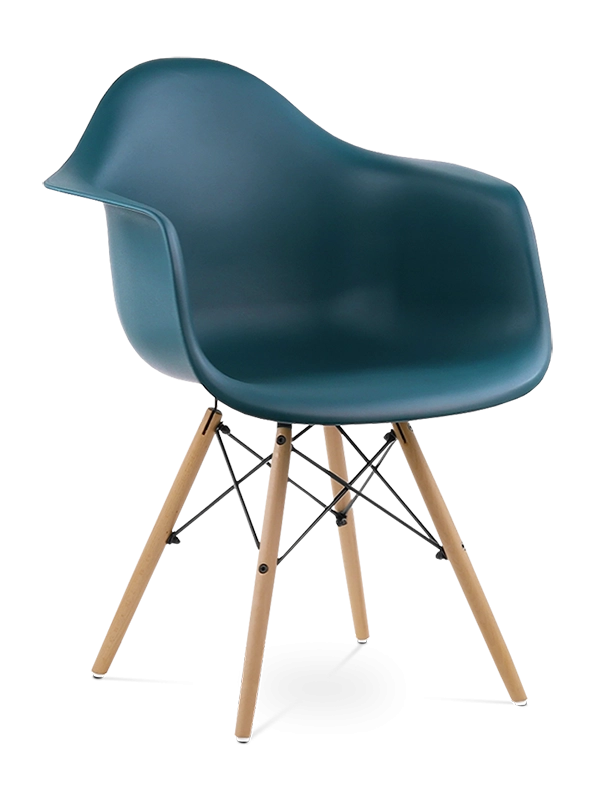 The DAW’s iconic injection moulded ABS seat is mounted onto beech dowel legs with a high grade lacquered steel frame. Faithful to the original design.