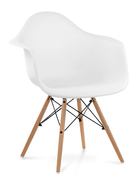 The DAW’s iconic injection moulded ABS seat is mounted onto beech dowel legs with a high grade lacquered steel frame. Faithful to the original design.