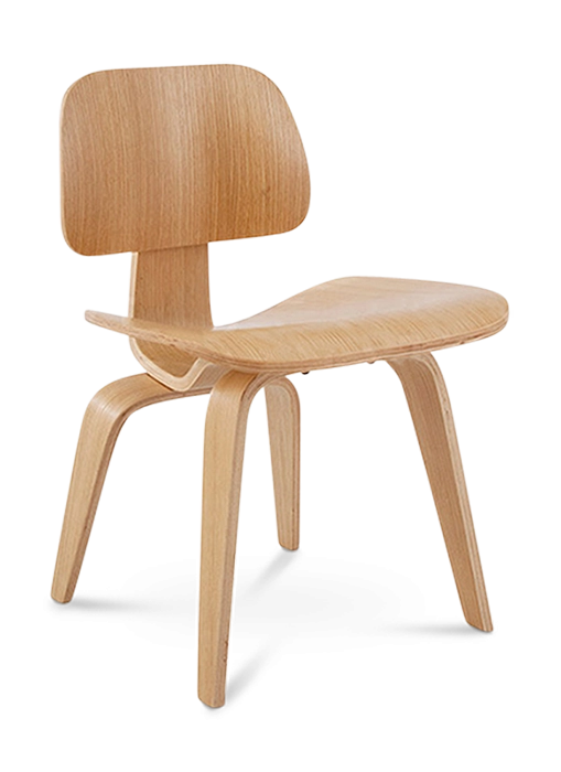 Designed by Charles and Ray Eames at the same time as their LCW lounge chair the Eames DCW Chair (Dining Chair Wood) moulded plywood chair is another simple design classic. The lines are similar to the LCW, but the seat itself is slightly raised, making it more suited as a comfortable and attractive dining chair.