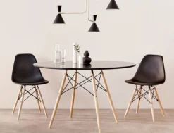 The DSW is a variation on the classic Eames DAR – the world’s first plastic, mass-produced chair designed for a 1948 competition to create low cost furniture. Nicknamed the “Eiffel” because of the resemblance of its metal frame to the Paris landmark, it made joyous and innovative use of bright, bold plastics. However, the DSW departs from the original design by substituting wood for key elements of the original all-steel frame, creating a unique mix of traditional and modern materials. Like other DAR-derived chairs, the result is a piece that you can use comfortably for hours at a time, whether as an occasional chair or as hardwearing, everyday seating in your home or office. Available in a variety of curated colours.