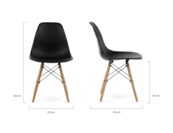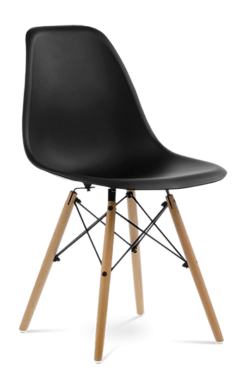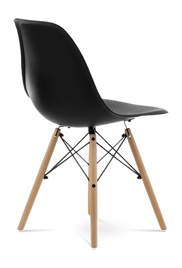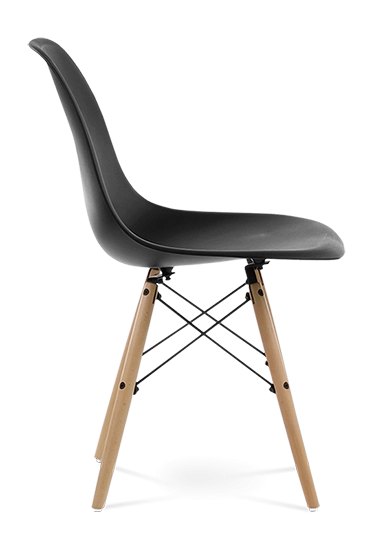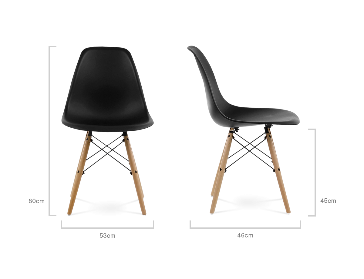 The DSW’s iconic injection moulded ABS seat is mounted onto beech dowel legs with a high grade lacquered steel frame. Faithful to the original design.