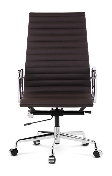 Our EA119 is manufactured to the highest standards with a polished aluminium base on castors – glides available – and finest leather upholstered ribbed padding in a choice of colours. Low backed, wool and mesh versions are also available.