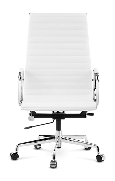 Our EA119 is manufactured to the highest standards with a polished aluminium base on castors – glides available – and finest leather upholstered ribbed padding in a choice of colours. Low backed, wool and mesh versions are also available.