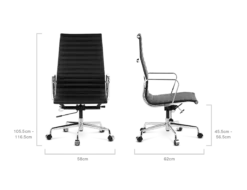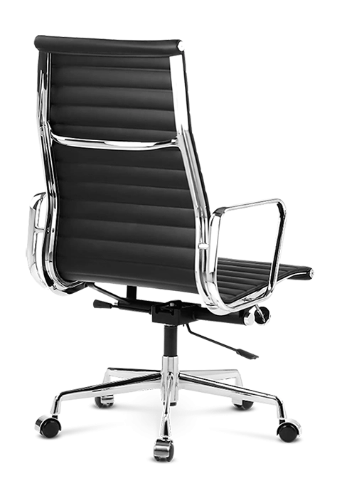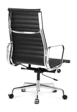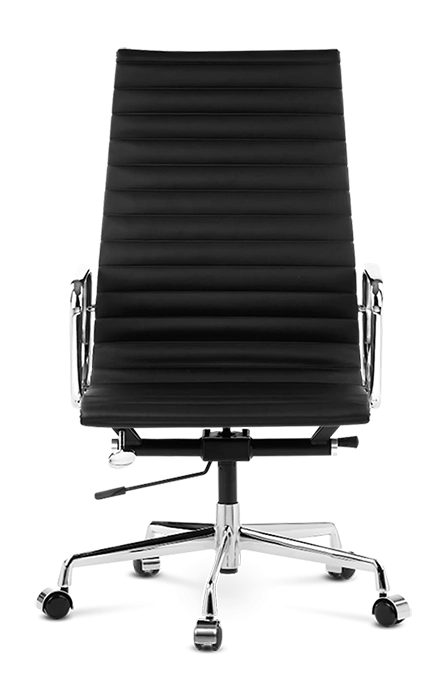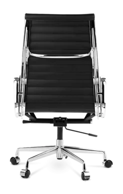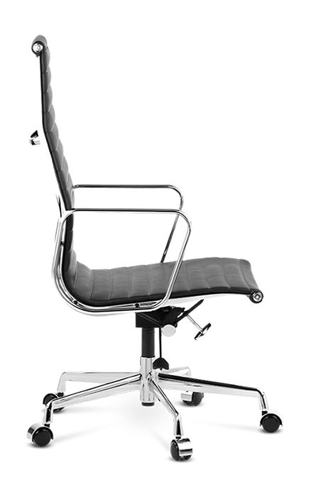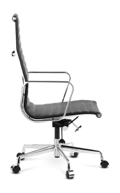 Our EA119 is manufactured to the highest standards with a polished aluminium base on castors – glides available – and finest leather upholstered ribbed padding in a choice of colours. Low backed, wool and mesh versions are also available.