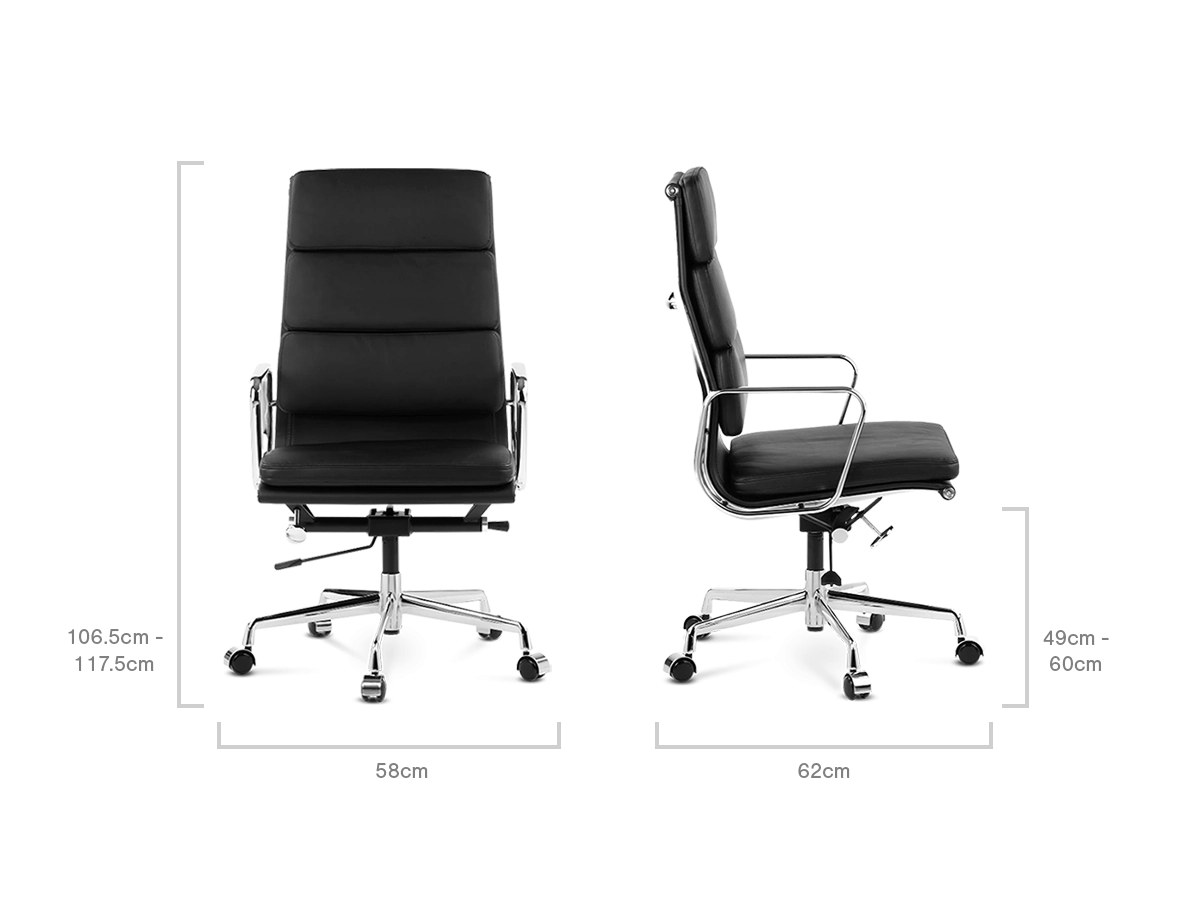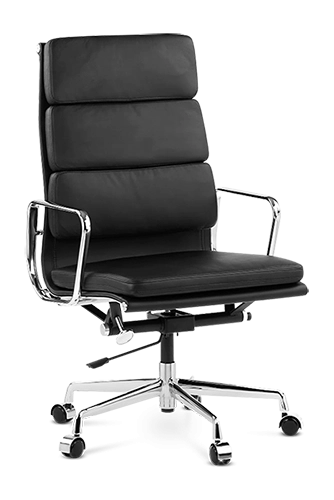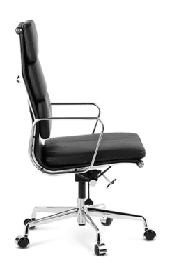 IIn their quest to perfect the contemporary executive office chair, Ray and Charles Eames pursued two parallel paths within their designs – lightweight on one hand and luxurious on the other. The EA 219 from 1969 is where those two paths cross and, to our mind, represents the ideal compromise. Featuring a lightweight aluminium frame with traditional, soft, leather padding, it feels completely comfortable from the moment you first take seat. Of course, it looks superb too – smart and minimal but also inviting and clearly carefully crafted. This is why it works superbly in almost any office environment – from the spare bedroom of your home to the plushest corporate surroundings. A low-backed version, the EA217 is also available. Shown here in black full-grain Italian leather.