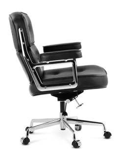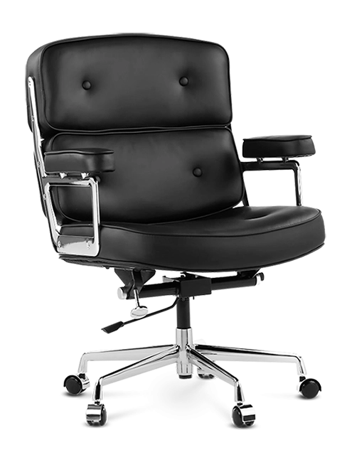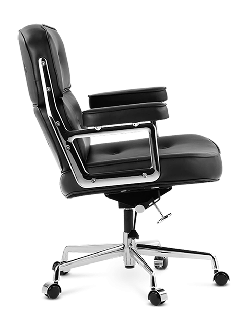 Originally designed as a lobby chair for the Time Life Building, the Eames ES104 has since become recognised as an executive office chair par excellence. Place your trilby on your hat stand, your feet on your desk and pour yourself an Old Fashioned – and you will be transported to the Madison Avenue of Mad Men. And it’s a place you might want to stay because the office chair, borrowing the three cushion arrangement pioneered in the earlier Eames Lounge Chair, provides the right combination of comfort and support to get your creativity flowing. Match your interior with our range of selected leathers. Shown here in tan brown leather.