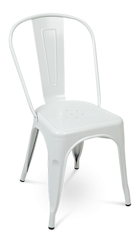 The Xavier Pauchard inspired metal chair is a true archetype of Gallic bistro-chic. This reproduction Tolix chair is made with a robust steel frame with full framed backrest which adds extra support. Available in several attractive lacquered finishes.