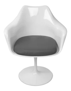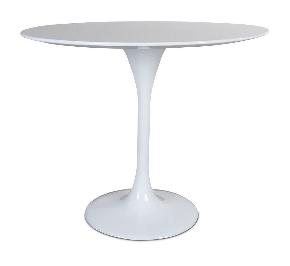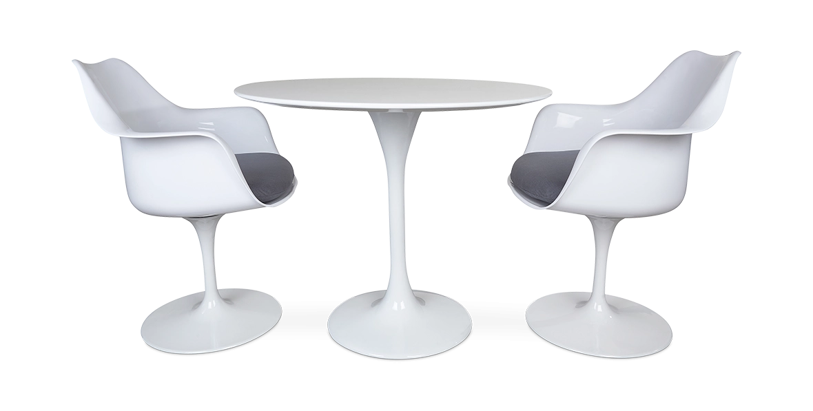 The replica table’s unique aluminium central stem allows for ample leg room whilst the table top helps to give your room a modern statement. The Tulip Table and Chairs belong together.