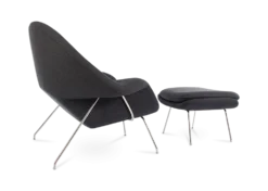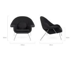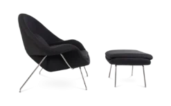 Originally designed in 1948, Eero Saarinen’s dark grey Womb Chair and matching ottoman was the result of a request from mid-century design pioneer Florence Knoll for “a chair that was like a basket full of pillows”. Saarinen sought to design a comfortable chair which would allow several sitting positions rather than one rigid one position. The chair’s low, wide seating position and cocooning arms make it extremely comfortable and cosy whilst allowing you spread out in any direction. Saarinen’s laid-back approach to design and attention to detail makes the chair a real must for anyone serious about furniture, design and comfort.
