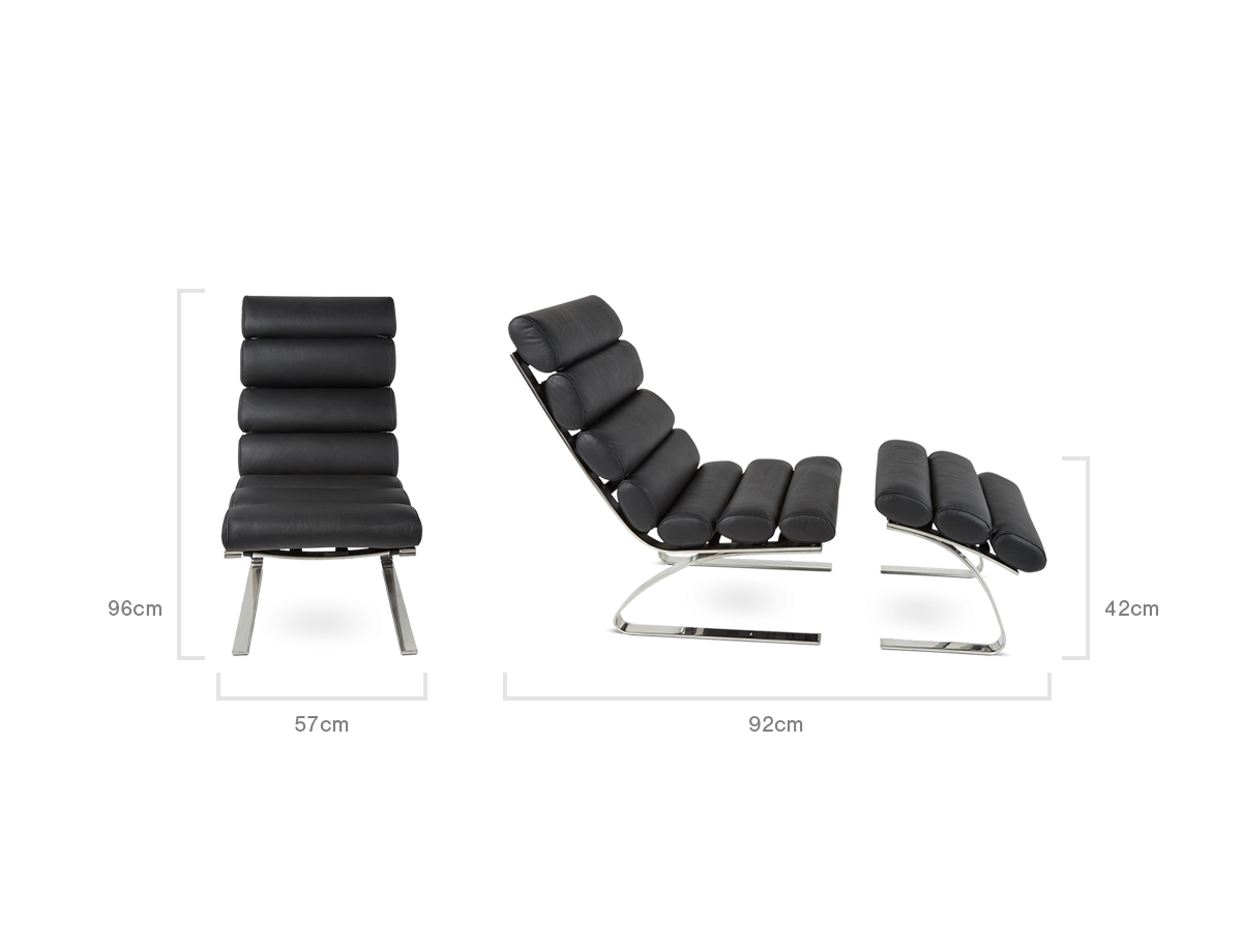 | Product Materials | Stainless steel base and frame with full top grain Italian leather upholstery. |