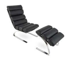 Inspired by Reinhold Adolf and Hans-jürgen Schröpfer, the Sinus Lounge Chair and matching ottoman was originally launched in 1976 to be the decade’s answer to mid-century lounge chairs. The design’s unusual steel skid base allows for a slight rocking motion, a trait which is seldom seen in such luxurious chairs. The Sinus Chair also breaks convention through it’s build structure; a steel frame surrounds only the outside to give a lightweight appearance and superior comfort.