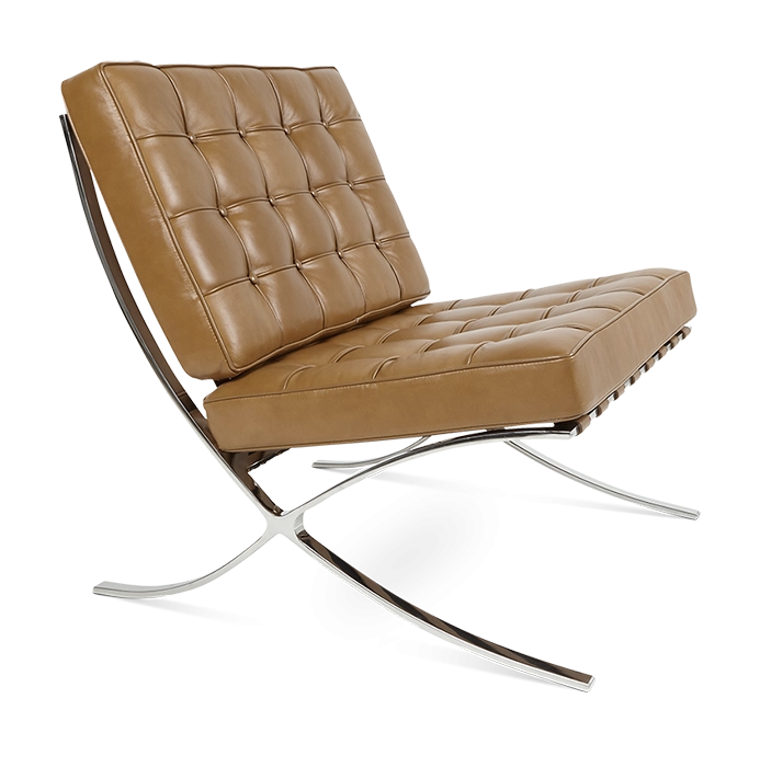 Ludwig Mies Van der Rohe’s Barcelona chair, designed exclusively for The German Pavilion, was that country’s entry for the International Expo in Barcelona in 1929. It was designed in case the Spanish monarchs wished to sit during their tour of the Expo. This iconic contemporary chair design resulted from the collaboration between the famous Bauhaus architect Ludwig Mies van der Rohe and the architect and designer Lilly Reich. An icon of modernism, the design of the Barcelona chair was inspired by the folding chairs of ancient times. It is often referred to as the Pavilion Chair because it was entered in the German Pavilion at the 1929 International Exposition.