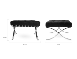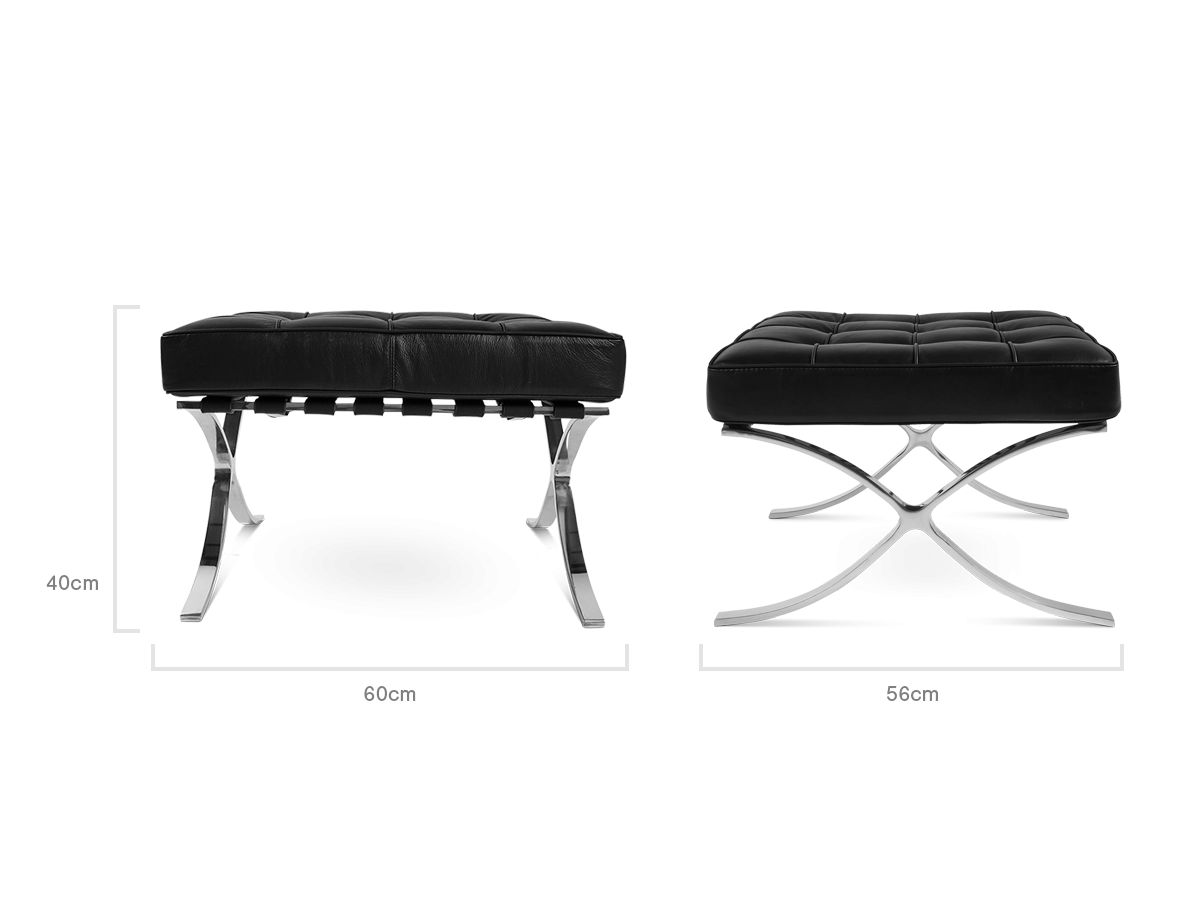 The Barcelona style was created by Bauhaus director Mies Van der Rohe for the International Exposition of 1929, held in the eponymous city. As the King and Queen of Spain toured the German Pavilion, this ottoman and its matching chair were provided as somewhere to pause and talk for a while. Later in his career, Van Der Rohe’s Barcelona Chair & Ottoman and his other designs became widely-recognised classics. Timeless and sophisticated, the quilted leather and perfectly proportioned stainless steel frames of the Barcelona range became a byword for contemporary elegance.