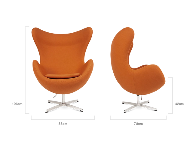| Product Materials | Moulded fibreglass, upholstered in hand stitched wool, cashmere or full grain Italian leather, 4 star polished stainless steel base with plastic glides. 360° swivel mechanism. |